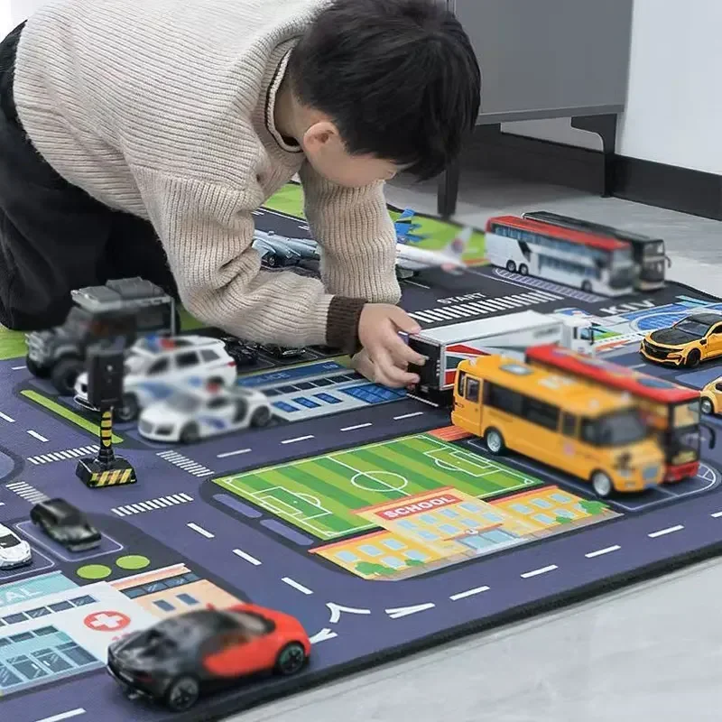 50X80Cm Non-Slip Baby Play Mat Crawling Mat Cartoon Runway Carpet Parking Lot Road Game Playmat for Playing with Cars Baby Toys