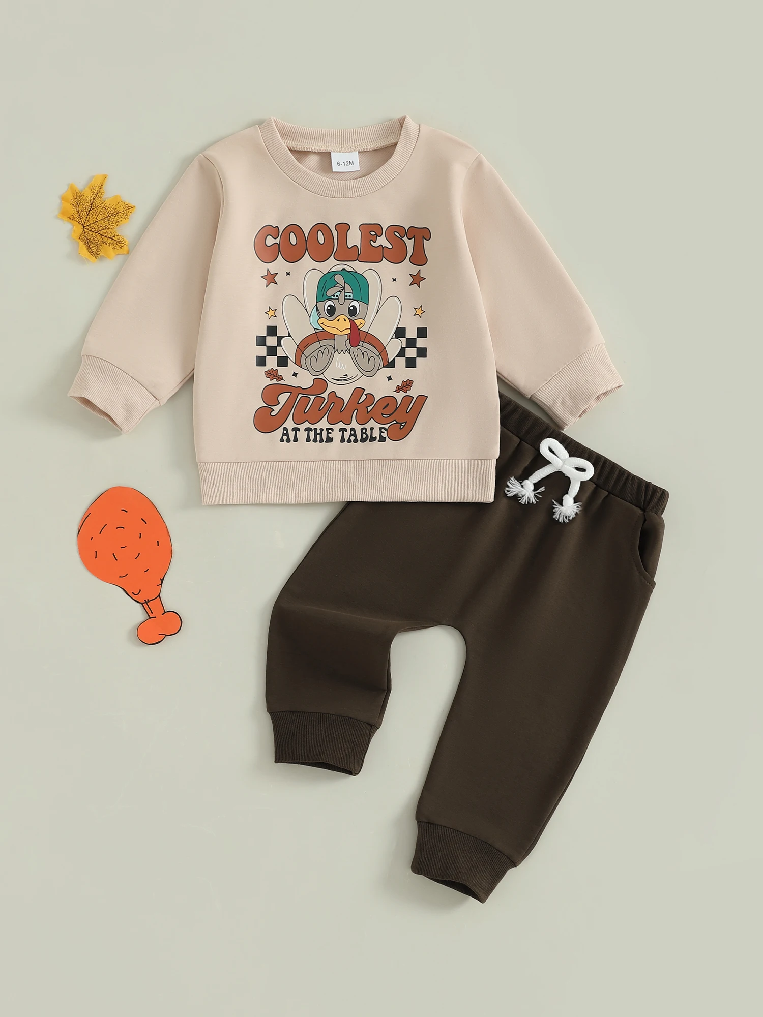 Toddler Boy Thanksgiving Outfits Letter Turkey Print Long Sleeve Round Neck Pullover + Elastic Waist Solid Pants 2 Pcs Set