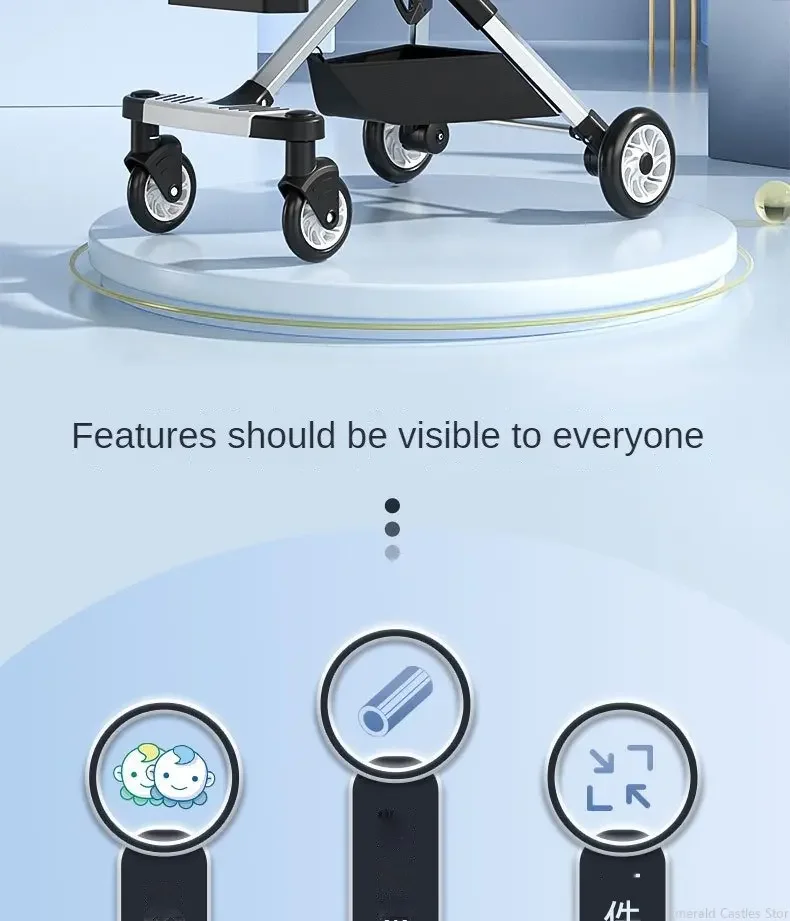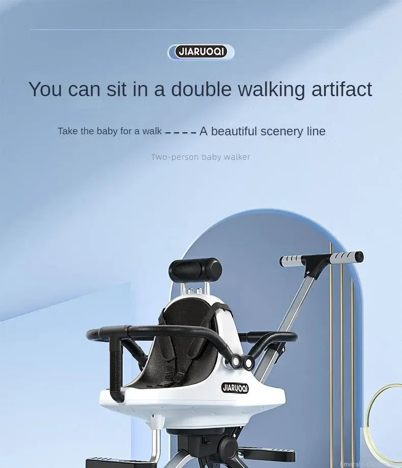 Lightweight Twin Stroller Portable Outdoor Push Twin Cart High View Four Wheel Twin Stroller with Parasol Foldable Baby Carriage